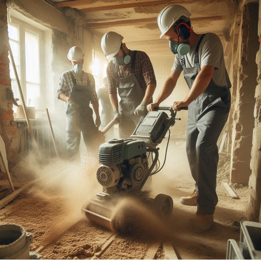 Boden abschleifen, Bodenabfräsen – Beton, Fliesen, Teppichkleber